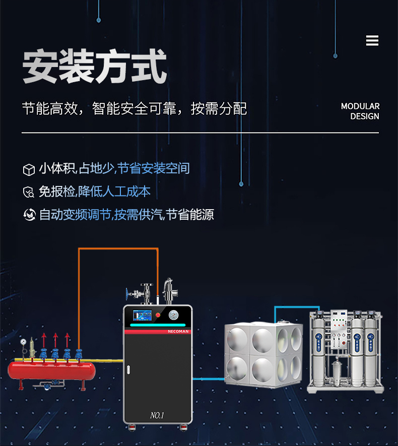 積木式自由組合,按需供氣;蒸汽量:6kg至6T;幾何容積小于30L,無需報檢;獨特汽水分離器蒸汽干度高達99%;溫度、壓力、可定制,更多參數可致電15323300918...