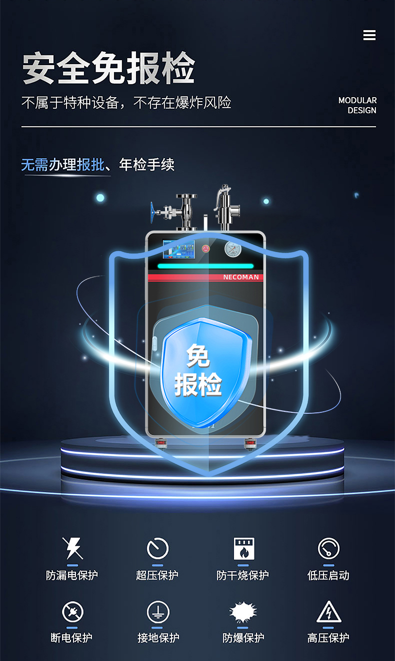 積木式自由組合,按需供氣;蒸汽量:6kg至6T;幾何容積小于30L,無需報檢;獨特汽水分離器蒸汽干度高達99%;溫度、壓力、可定制,更多參數可致電15323300918...